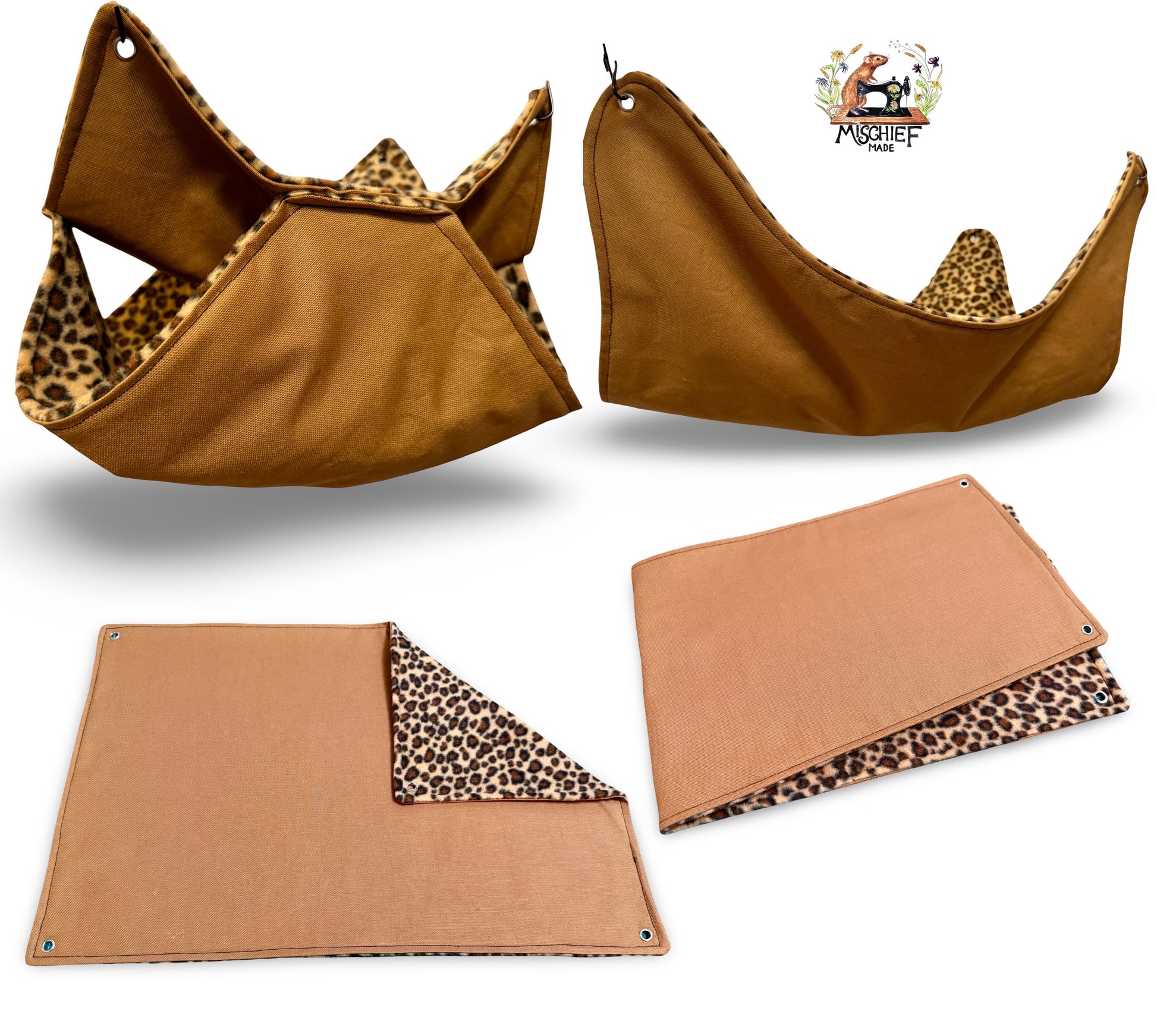 4 piece fleece lined rodent hammock set for rats ferrets chinchillas Beige Natural