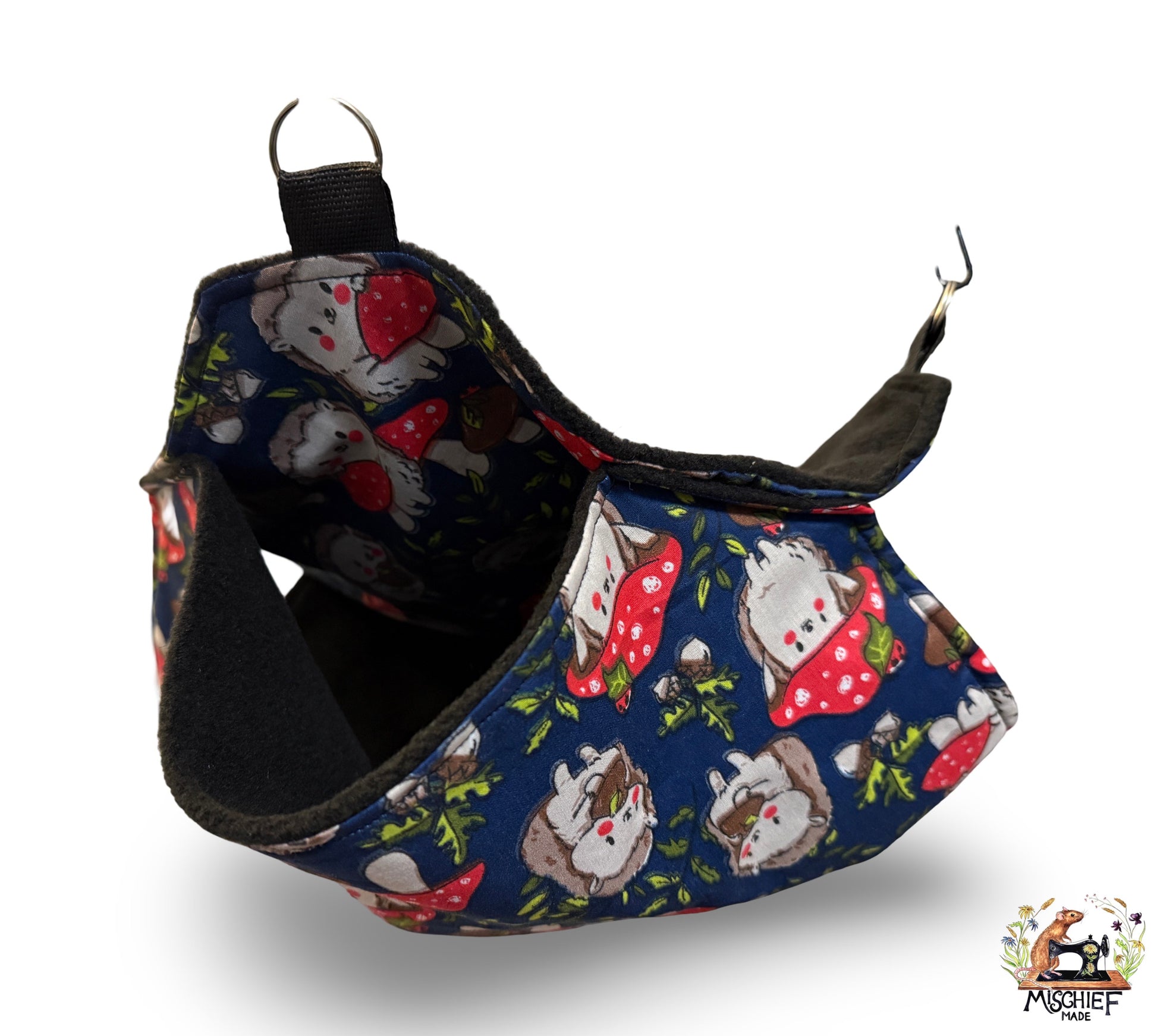 A Mischief Made favourite – the classic double-layer rat hammock. Two platforms, double the lounging options, and a cosy hideaway space that rats instinctively adore.