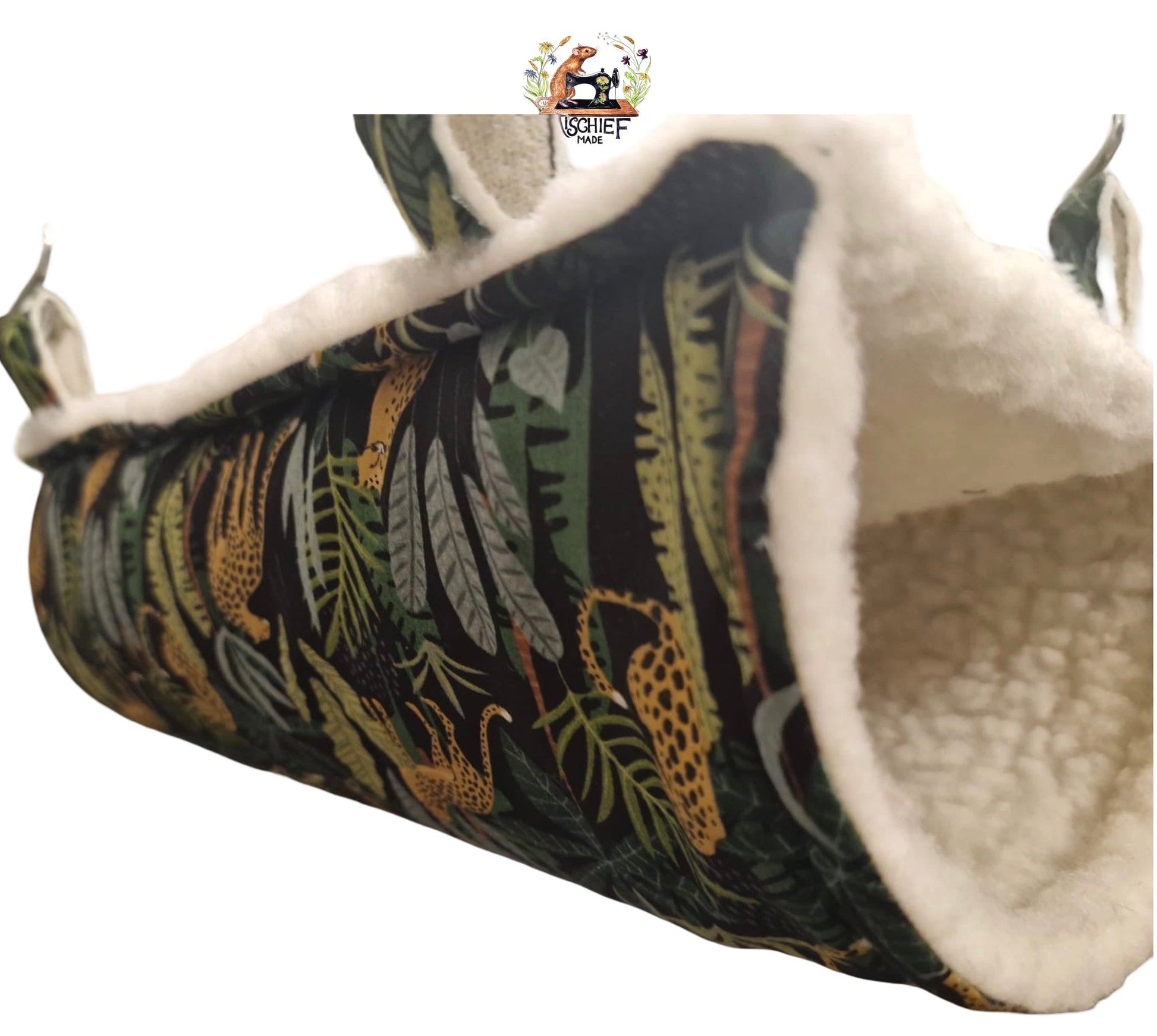 Snuggle tunnel meets swingy hideaway. A hanging tube bed designed for rats who love to sleep, hide and peek out from a cosy tunnel.